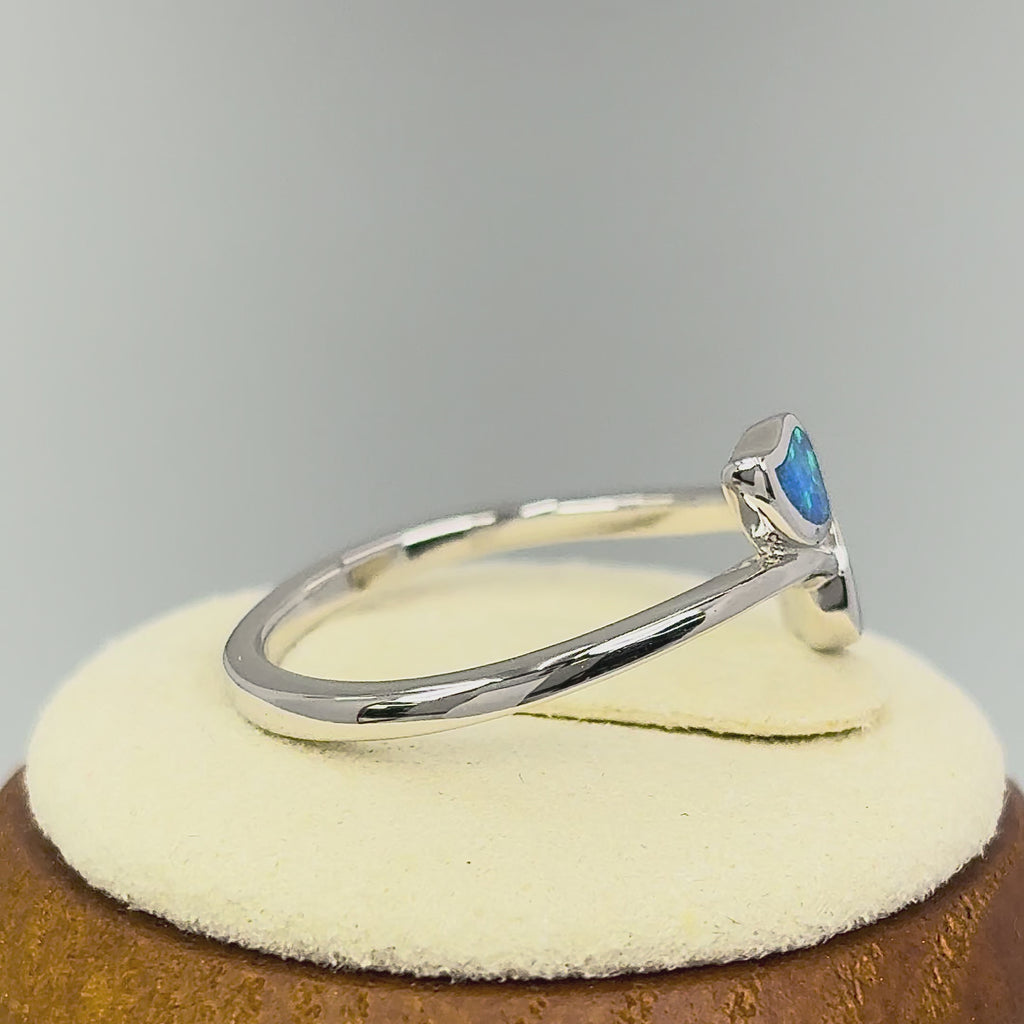 Sterling Silver Blue Lab Opal Double Leaf Wrap Ring