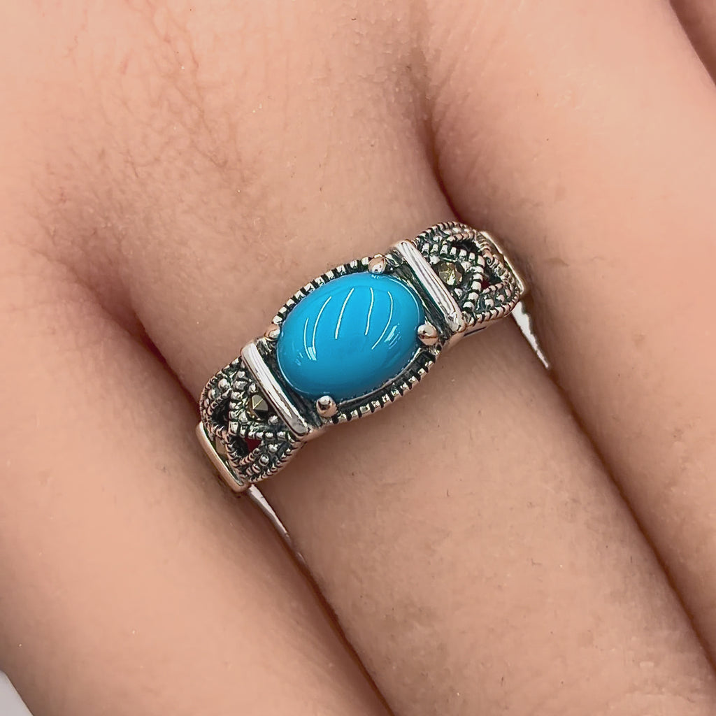 - Stone material: simulated turquoise & genuine marcasite